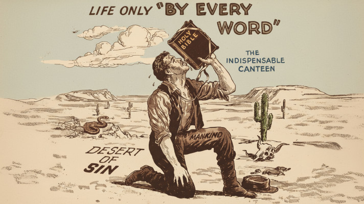 The picture is all to real my friends in the spiritual life. We are all wandering in the wilderness, the desert of sin we call this evil world. Dangers abound, the devil as a serpent is ready to destroy our lives at a moment's notice of unguardedness. In this hot barren wasteland of sin, death awaits all who don't take hold of the indispensable canteen, the Word of Life. The Words of Jesus, as given in the Holy Bible, are the Source of Life for the weary parched traveller.